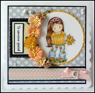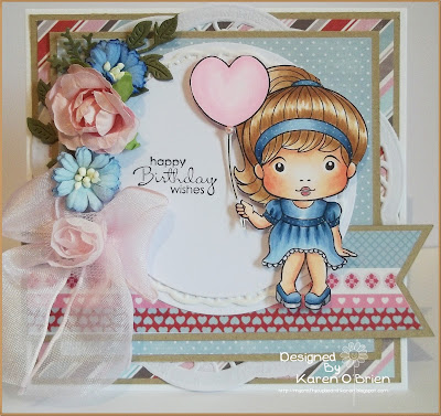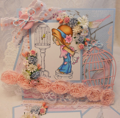 I love the prettiness of this card and that adorable image and embellishments