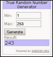 And the winner chosen by Random Org is...