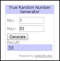 And the winner chosen by Random Org is...